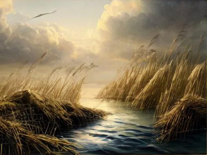 In Egyptian culture, the Sea of Reeds was an important element of the soul’s journey to the after-life. If someone had lived a good life, they’d be able to successfully transverse the Reed Sea and carry on living in the Field of Reeds as a spirit.